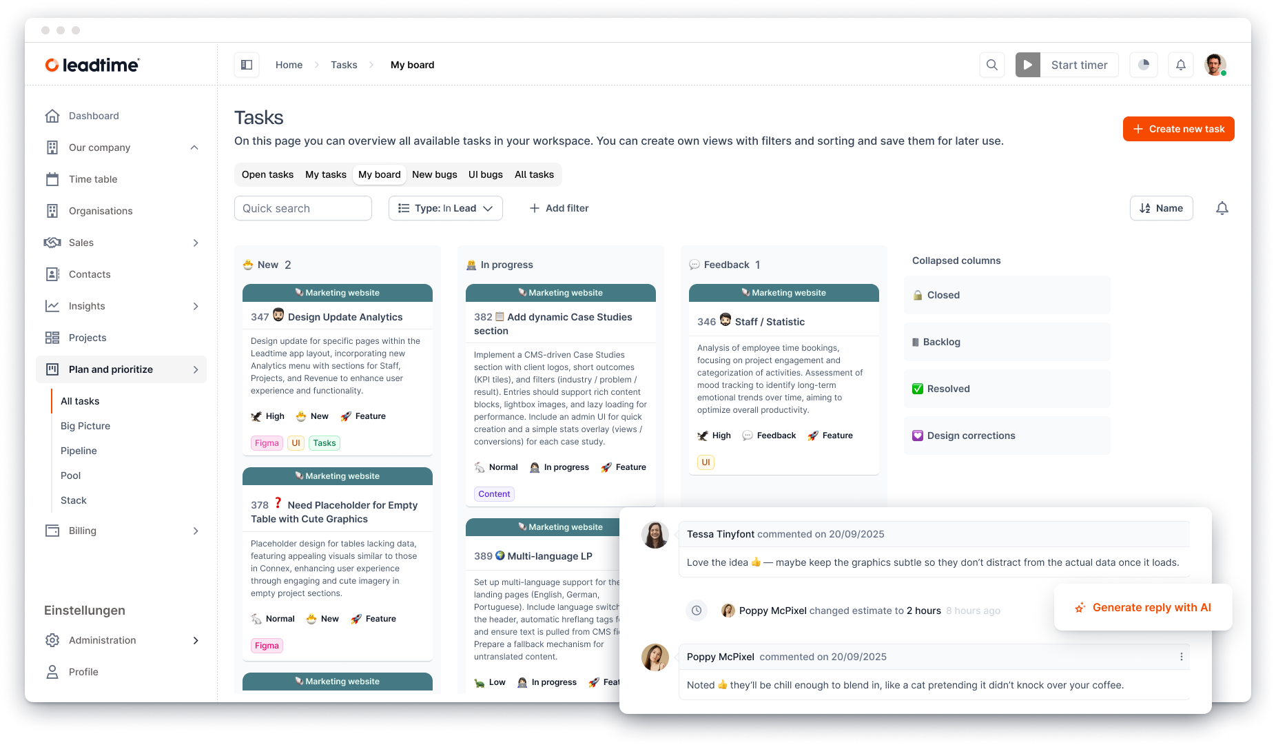 - –Projektmanagement: Backlog, Sprint-Planung, Kommunikation.